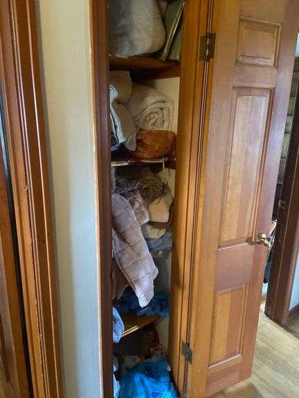 LOT 90 - Contents of Linen Closet Comforters Lace Ensembles Panel 80 W by 63 L Valance 80x16 Inches Sheets Rugs