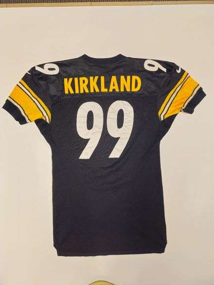 LOT 1423 - Nike home jersey worn by Steelers linebacker Levon Kirkland. Jersey has been conclusively photo matched by Davious Sports. Jersey has several team repairs, loose threads, hit marks and transfer. Kirkland played for the Steelers from 1992 through the 2000 season. He was drafted in the second round of the 1992 NFL Draft out of Clemson. He was a one-time All-Pro and two-time Pro Bowl selection. He came in third in the 1997 Defensive Player of the Year voting which was also his All-Pro Season. He had five sacks, 126 tackles and two interceptions that season. Each autographed and game-used item is personally authenticated by Pittsburgh Steelers Authentic Memorabilia. Each memorabilia item is affixed with an individually numbered, tamper-evident hologram which can be verified online ensuring that this item is authentic and eliminating the possibility of fraud.