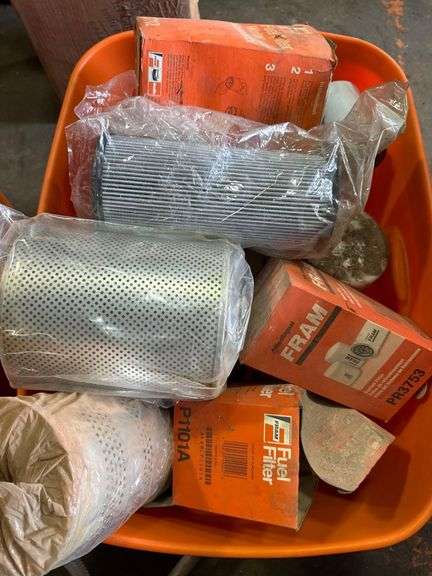 LOT 153 - Tote of Mixed Filters. Oil Filters, Fuel Filters, Air Filters etc. Fram, Wix, Bobcat etc.