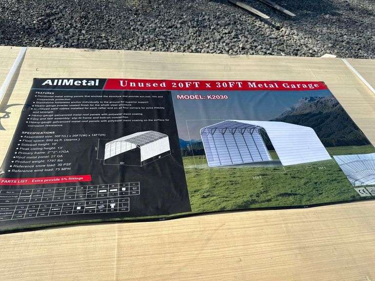 LOT 84b - 20ft x 30ft Metal Garage/Carport - Model K2030