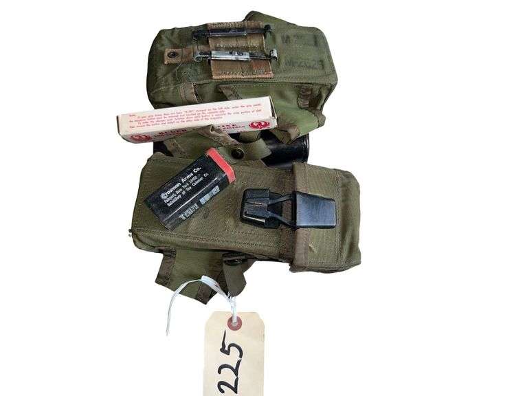 LOT 225 - U. S. Army Magazine Carriers With Clips - RUGER 9 Shot Magazine- Inactive Grenade - Pepper Spray