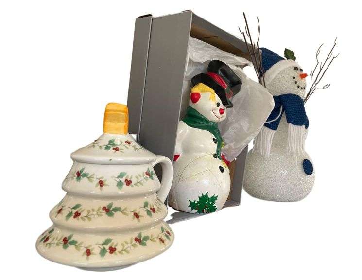 LOT 671 - Pfaltzgraff , Christmas Mug,And a 11 Inch Snowman Glued Back Toghter