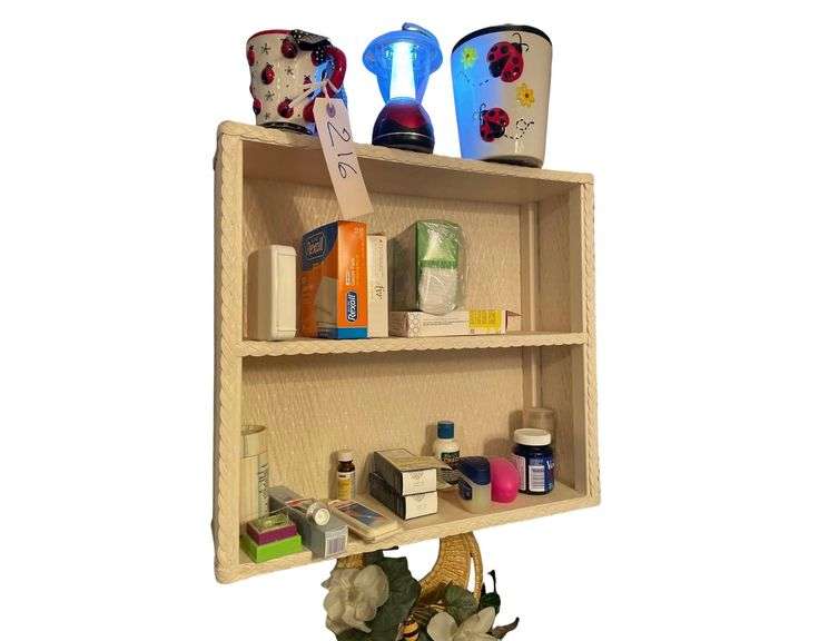 LOT 216 - Contents on Shelf Decorative Items with Health Care Products
