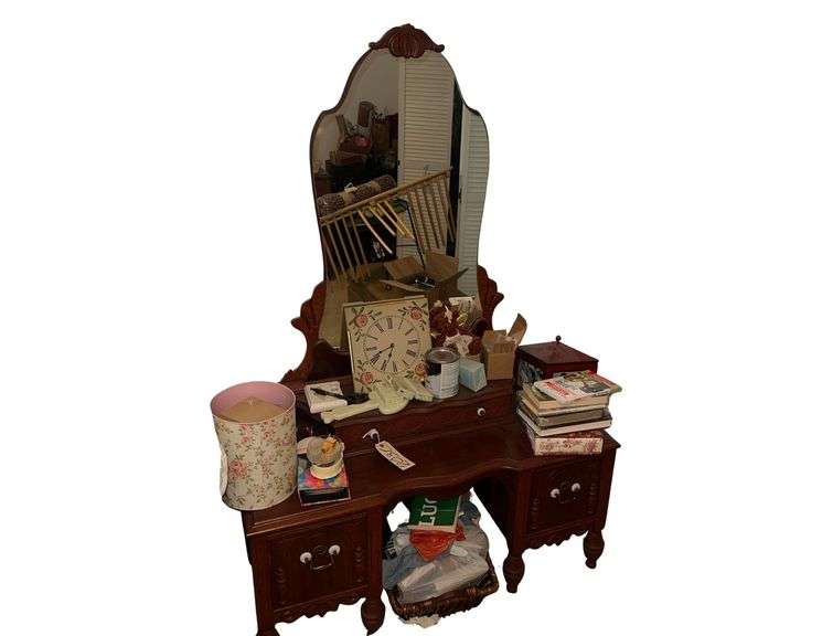 LOT 203C - Wooden Vanity - 46” L. X 19” D. X 69” H. Contents Included Framed Print Included