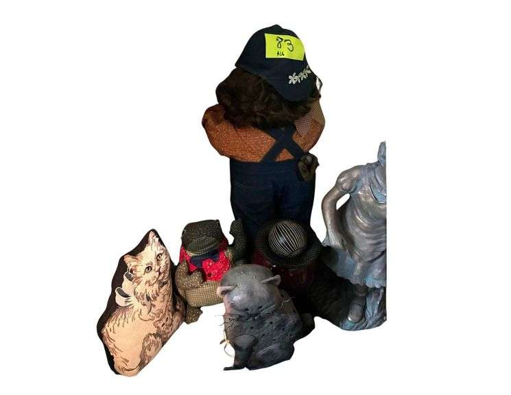 LOT 83 - Decorative Items - Wreath - Hand Woven Nativity Scene Framed - Cats - Chalkware Figurine